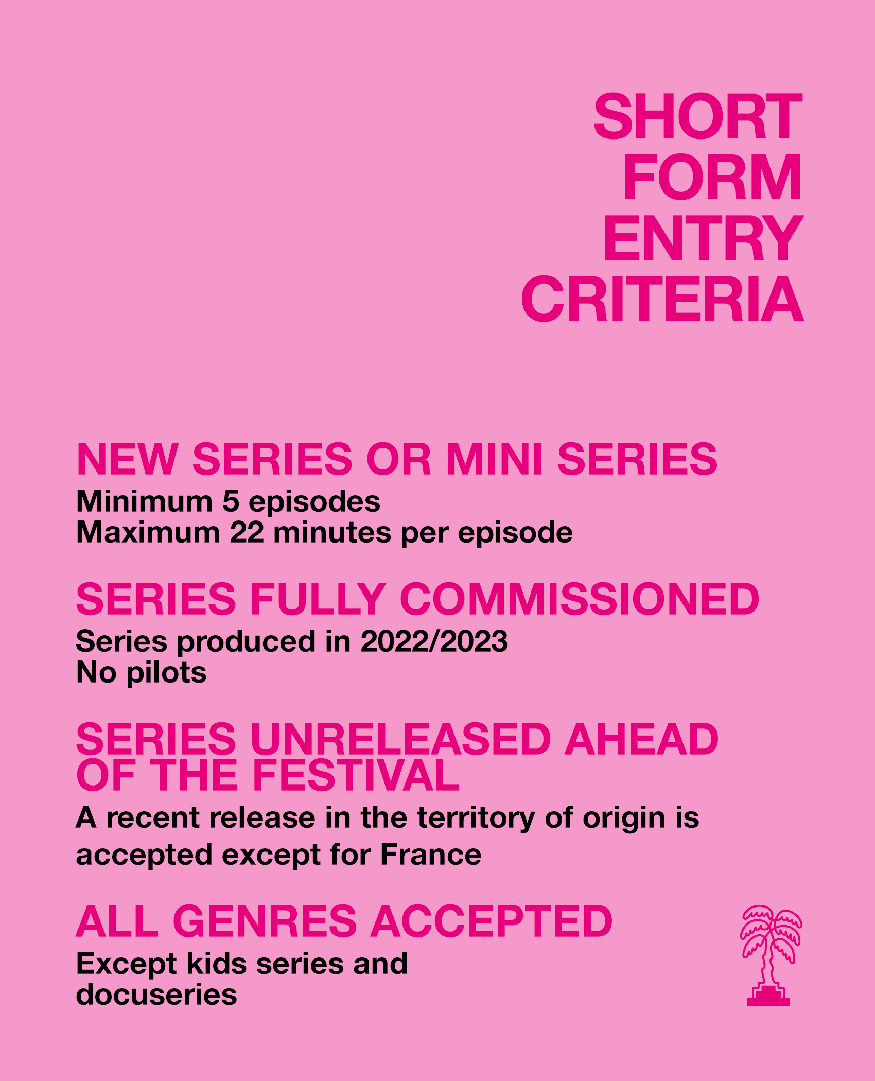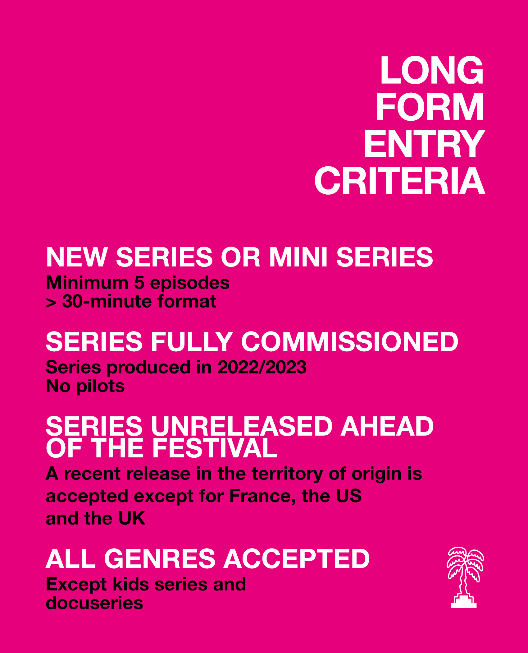 Check the eligibility of your series by reading the selection criteria below and the rules and regulations.